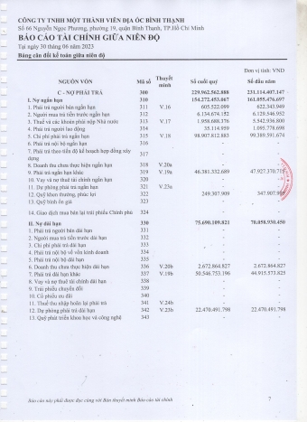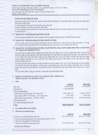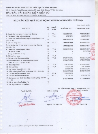 Báo cáo công khai tài chính 6 tháng đầu năm 2023