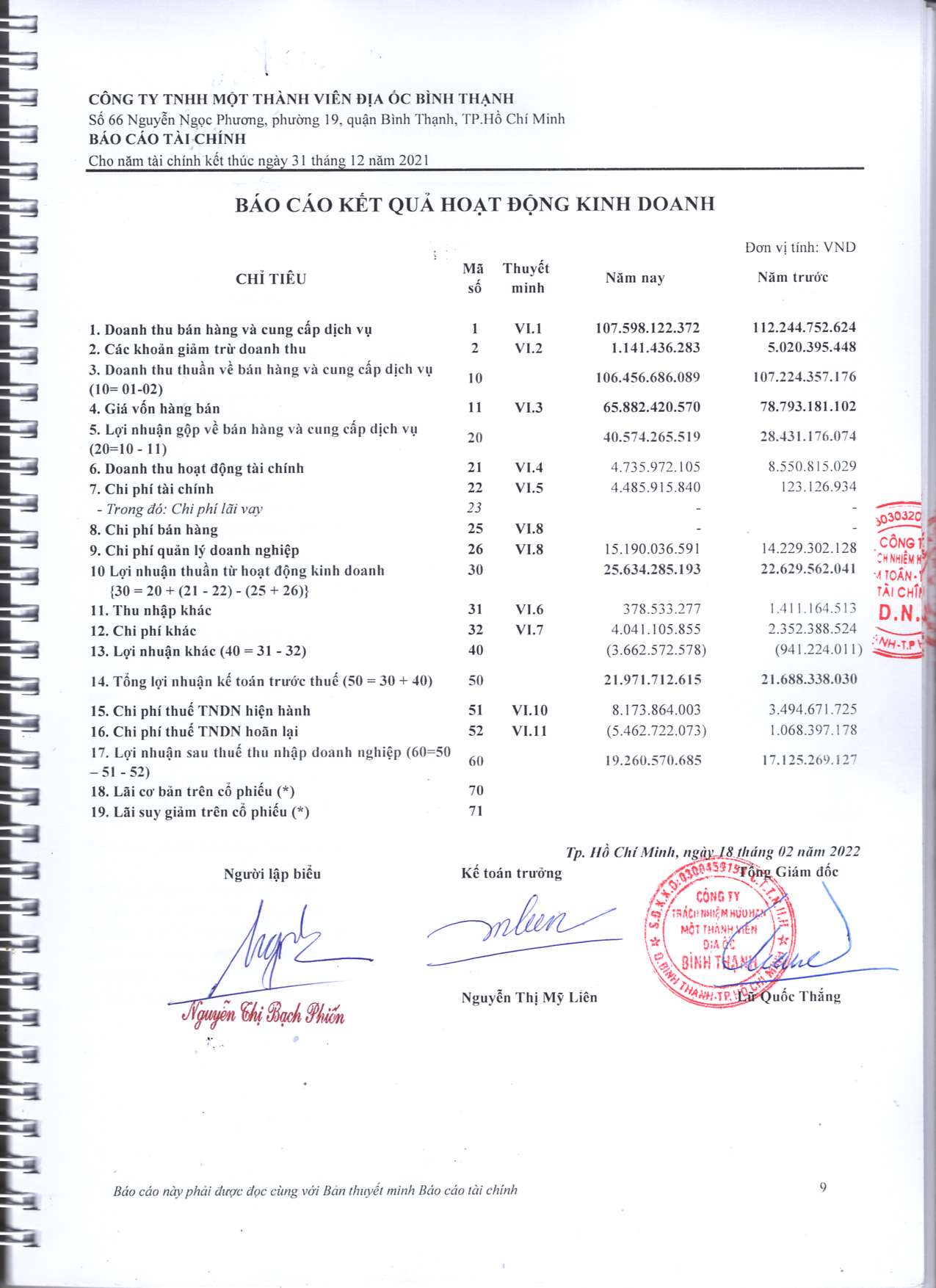 Báo cáo Tài chính năm 2021